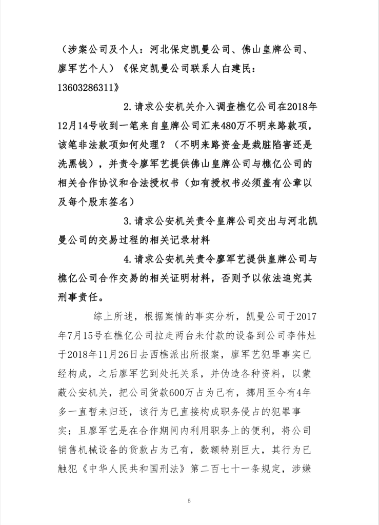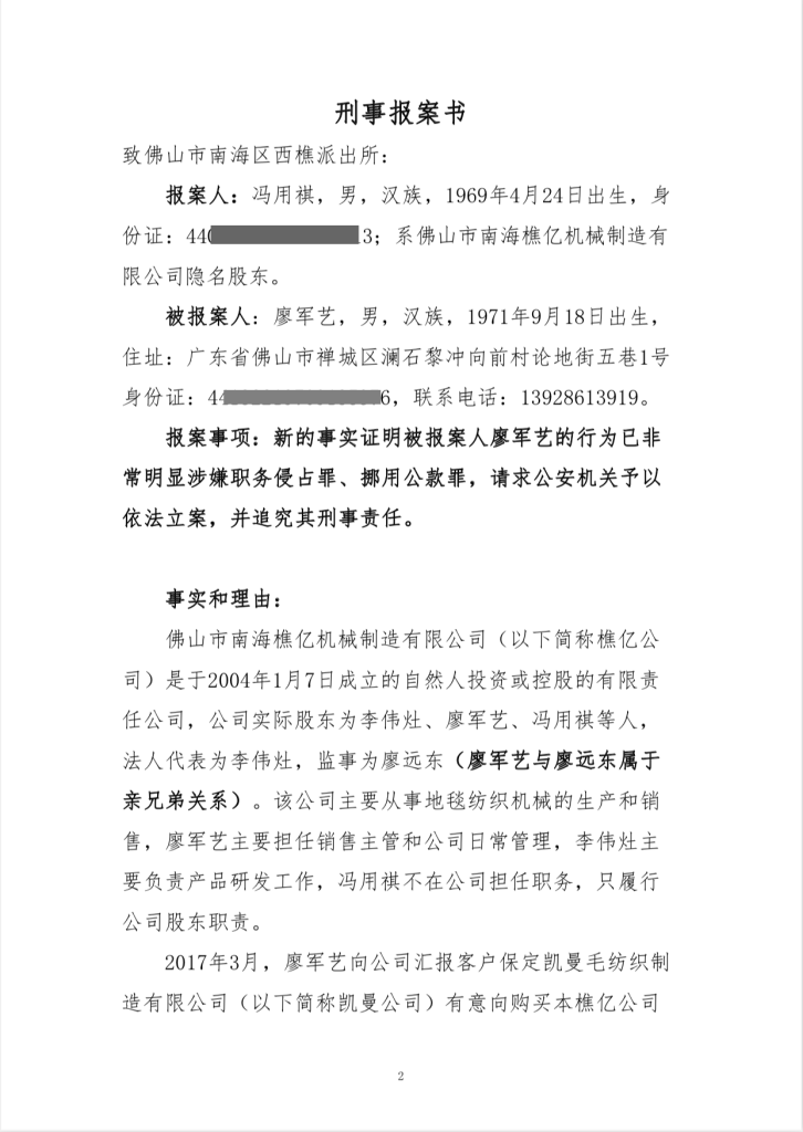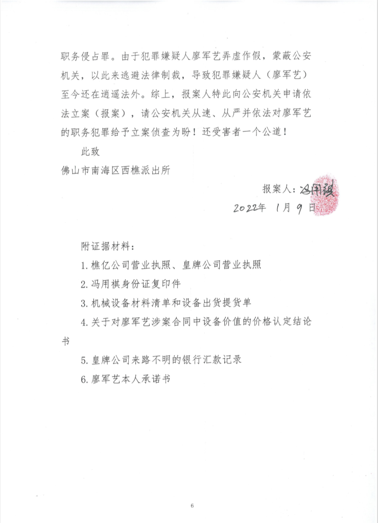 呼吁佛山市、南海区有关部门依据《公安机关办理刑事案件程序规定》、《公安部关于改革完善受案立案制度的意见》、《公安机关执法公开规定》、《公安机关执法质量考核评议规定》、《公安机关人民警察执法过错责任追究规定》、《关于深入推进公安执法监督管理机制改革的意见》等法规规定,压实执法办案和监督管理责任,督办廖军艺涉嫌职务侵占一案,追究其刑事责任。