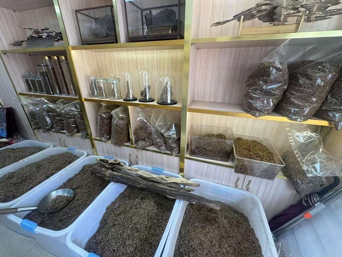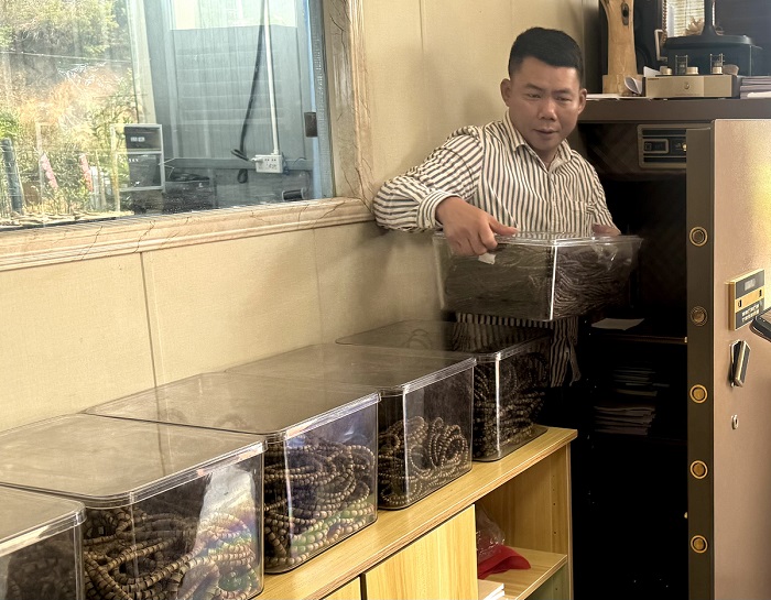 魏赞成向媒体展示沉香产品。