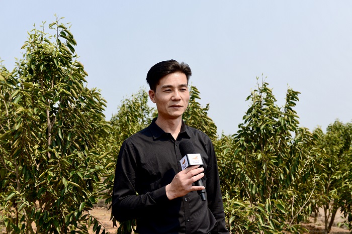 黄德丰在沉香基地接受记者采访。