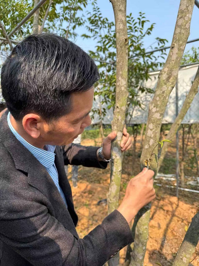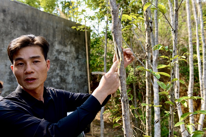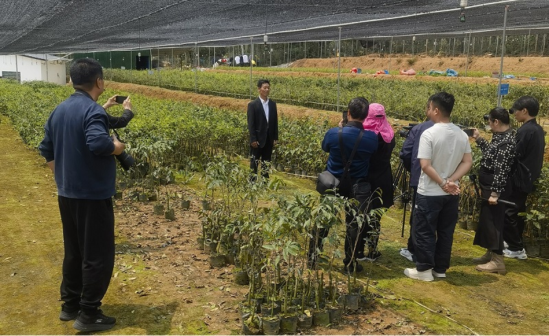 在春龙奇楠沉香种植专业合作社,黄春龙名誉会长带记者们走入树林深处,一棵老香树旁悬挂着雷击痕迹的照片,“这是大自然亲手选中的树。”他的语气中饱含敬畏。黄春龙多年深耕沉香育苗领域,致力于与高校开展科研合作。采访当天,恰逢他与中南林业科技大学生命科学与技术学院举行签约仪式。他介绍道:“希望通过科技力量,让每一株沉香苗都有溯源记录,实现标准化、规范化发展。”
