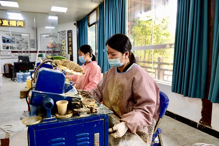 茂名市森海沉香种植专业合作社沉香珠链生产车间。