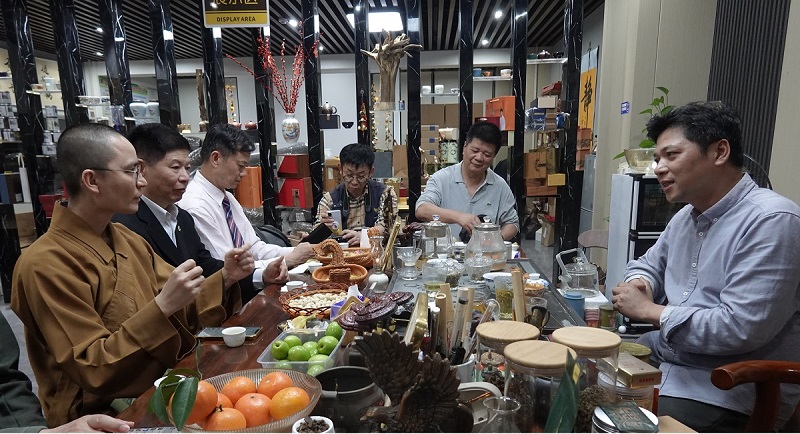 《拉斯维加斯新闻报》社长吴治欧、世界华文媒体基金会共同主席张士兴在汪科元会长陪同下,访问茂名市电白区沉香协会执行会长高健创办的乐香轩沉香。