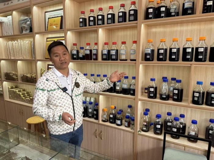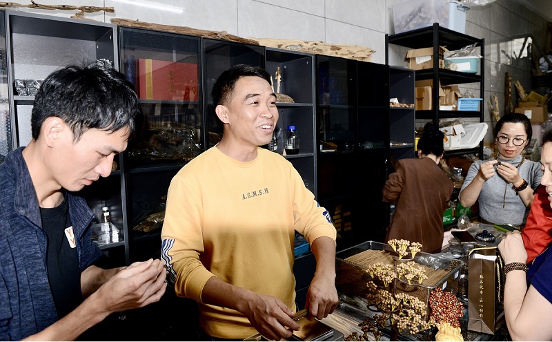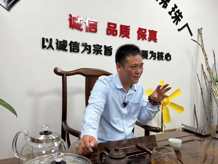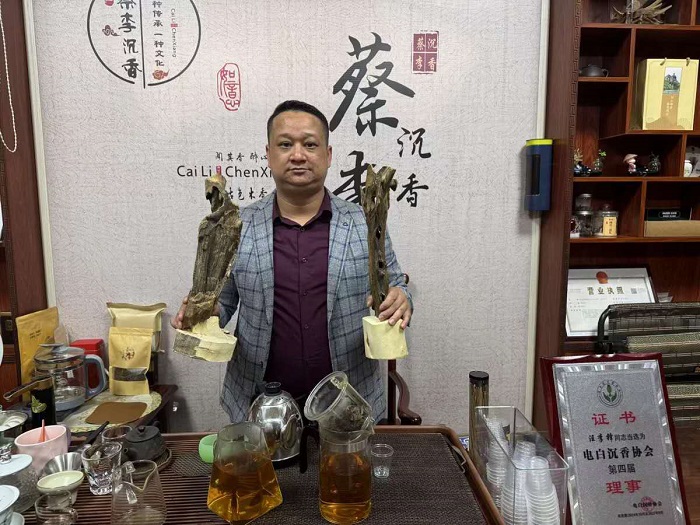 黄利福介绍沉香产品。