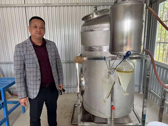 汪利锋在古法炼制精油车间。