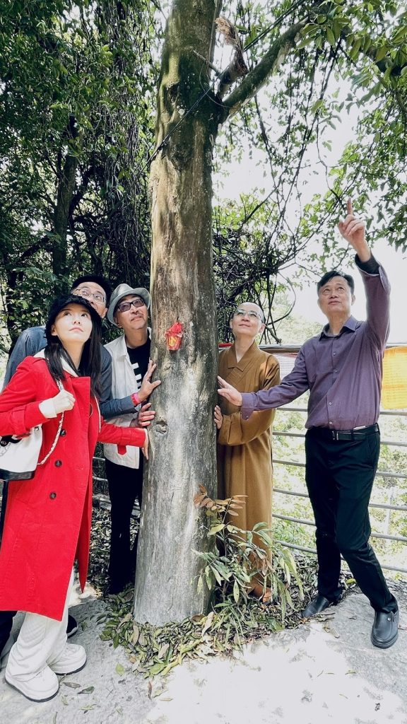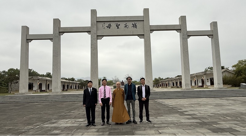 访问巾帼英雄冼夫人故居。从左至右:台湾《南华报》社长赖连金博士、茂名市电白区沉香协会会长汪科元、台湾《人间佛报》社长妙熙法师、世界华文大众传播媒体基金会副主席桑大卫、台湾《人间福报》业务发展部总经理陈立夫。