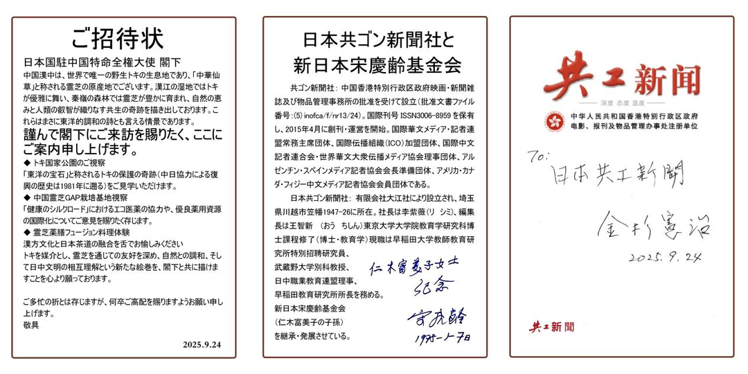 日本国驻华大使金杉宪治和公使园田庸特意为“日本共工新闻社”题字,“新日本宋庆龄基金会不是简单复刻,而是以民心回应需求。”リシミ表示,将守“以教育育和平”根脉,拓“以产业强友谊”新径,让中日友好兼具历史厚度与现实温度。